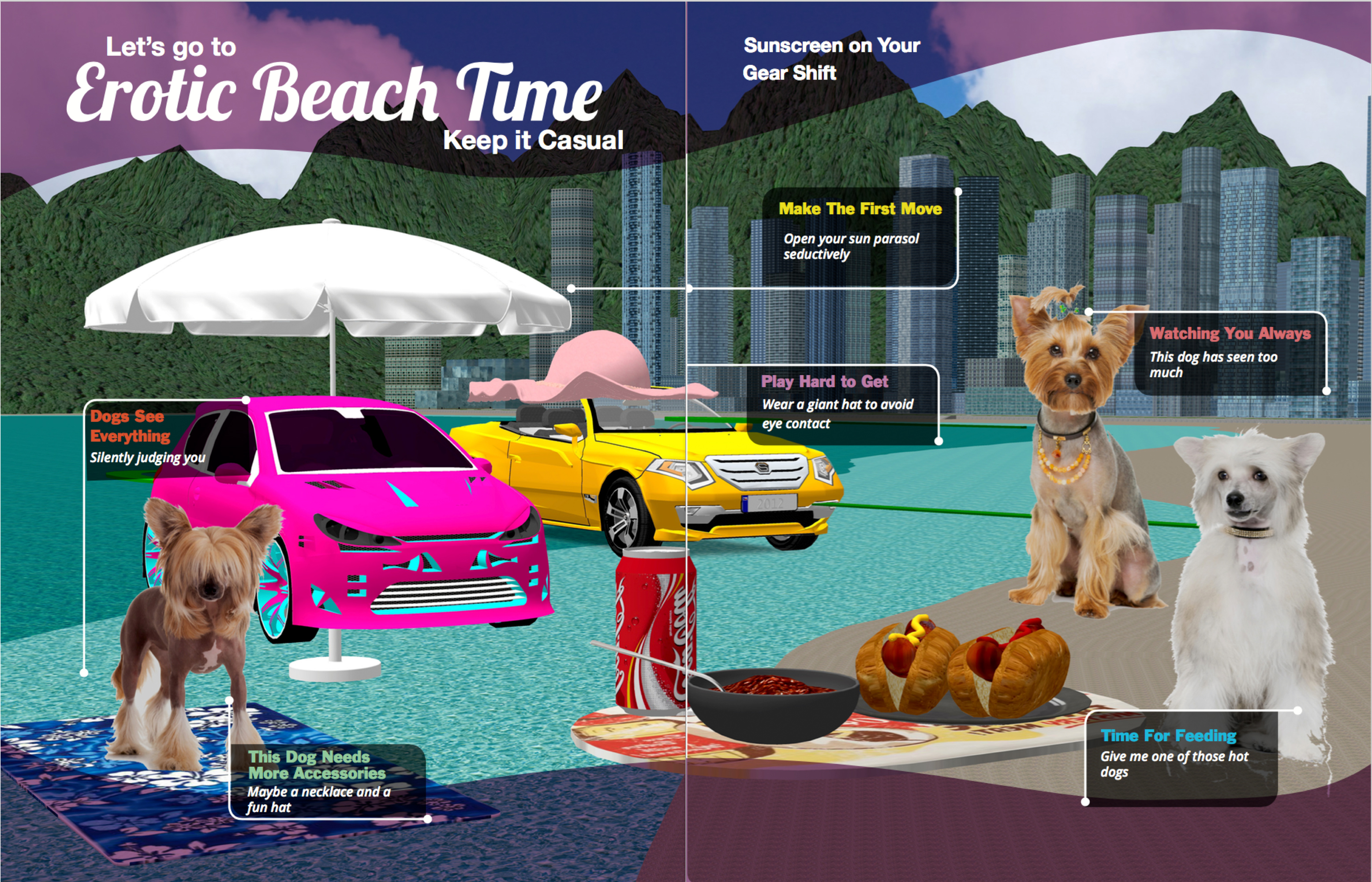 “Car Crush” is a satirical Teen magazine marketed to teenage girl monster trucks. This magazine includes articles on the latest monster truck boy bands, quizzes, and reviews of biodiesel flavors.