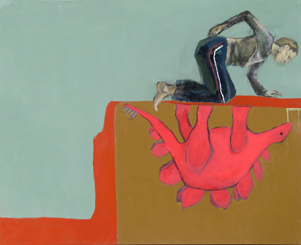 In a midnight insomnia full of self-doubt, I went to the place the dinosaur had appeared. The air was cold like a misty early morning commute. Deep in the mountains, the overhead clouds cast reflections into still sugared glasses along the skyline. I tried to track the stegosaurus footprints in the sand. Surely if I walked past the dinosaur it would recognize me and allow me entry into its secret and lonely world. Everything was still, the raspberry liquid suspended and motionless. The dinosaur had vanished, an apparition, and a sour, detergent smell seeped across the valley.