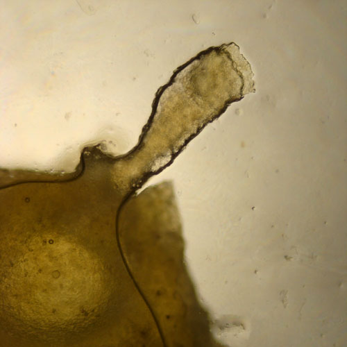 Making a slide feels much like doing a monoprint. I meticulously carve a tiny scraping of material, and flatten it between two pieces of glass to create an image. The process is indirect, and the results are never quite predictable. The moment when the picture first comes into focus is a magical surprise.