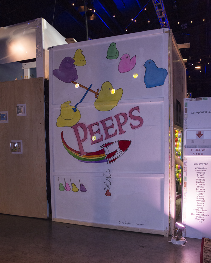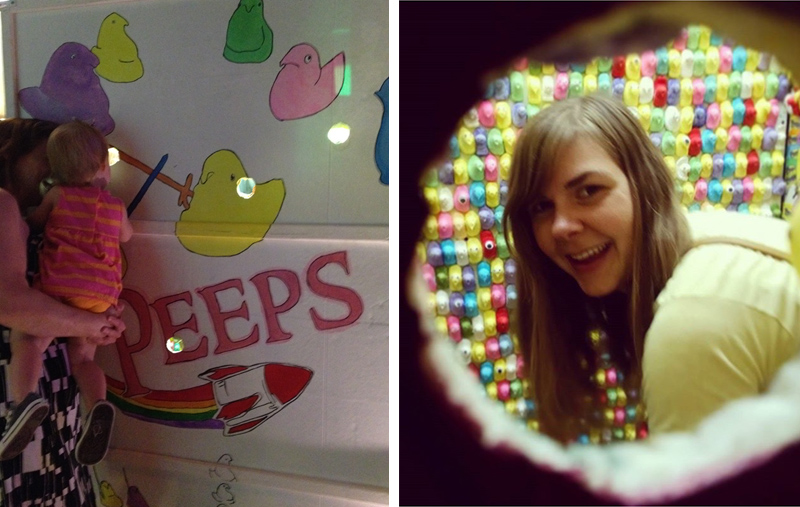Briena Harmening and I collaborated on building Peeps Pod, one of 60 interactive pods in the Modular Arts Pod exhibition. Modular Art Pods was a weeklong immersive art show, featuring a giant “art tunnel” that you crawl through.